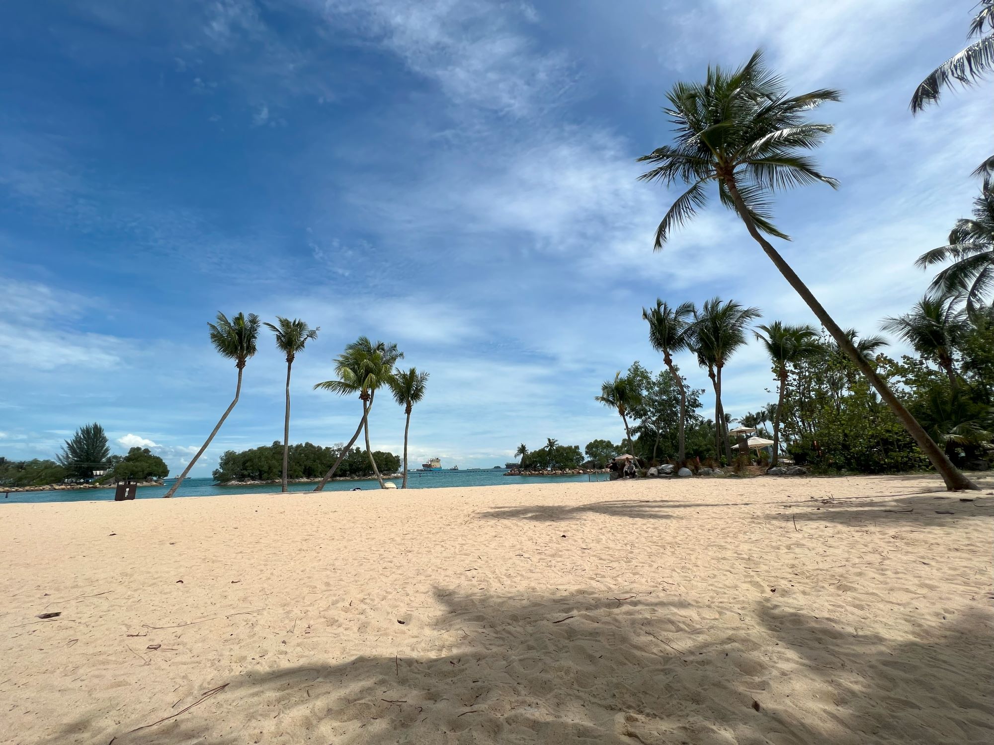 Am nächsten Tag machten wir uns nach dem Frühstück auf zur Henderson Waves Bridge, die höchste Fußgängerbrücke Singapurs, von der wir einen grandiosen Ausblick über Stadt und die angrenzenden Parks hatten. Anschließend kauften wir uns ein Ticket für die Cable Car, eine Gondelbahn, die uns vom Mount Faber bis nach Sentosa brachte. Von der Bahn aus hatten wir wieder einen fantastischen Blick über Singapur, den Hafen und die Ferieninsel Sentosa. Sentosa erkundeten wir zu Fuß und tranken am Nachmittag am Strand ein leckeres kaltes Bier. Auch wenn der Strand rein künstlich erbaut ist, hat man ein richtiges Urlaubsfeeling. Alles ist sehr sauber und bis in die letzte Ecke durch designt. Anschließend fuhren wir mit der Gondelbahn zurück zum Mount Faber, von dem wir uns ein Taxi in die Stadt nehmen wollten. Leider waren keine Taxen zu kriegen – irgendwie waren alle ausgebucht. Also liefen wir zu Fuß los, bis die Akkus unserer Handys fast leer waren und wir dadurch keine Orientierung mehr hatten. Da nach wie vor kein Taxi zu bekommen war, entschlossen wir uns den Bus zu nehmen – wir hatten zwar die Verkehrsapp nicht installiert aber der Busfahrer hatte irgendwie Mitleid und nahm uns mit zurück in die Innenstadt.